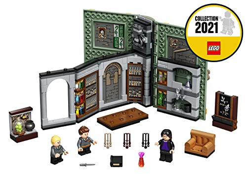LEGO Harry Potter Hogwarts Moment: Potions Class (76383) is a Hogwarts classroom playset hidden inside a brick-built playbook. Kids open the cover to be transported to Professor Snape’s Potions lesson. This magical set is bursting with features and accessories to inspire imaginative roleplay. Some are built-in, such as the shelves, and a few are loose, like the furniture and blackboard, which lift out to expand the play space. This enchanting Harry Potter go back and forth toy combines with others in the collection. Every opens to transport the child to a different Hogwarts classroom adventure and features a distinctively coloured cover decorated with a unique motif. The full range also connect to create a 360-degree Hogwarts play experience. If you’re searching for an amazing gift for a Harry Potter fan, the wide variety of LEGO Harry Potter buildable toy sets offer a selection of captivating gifts with a view to enchant any young witch or wizard. Measures over 5 in. (12 cm) high, 3 in. (8 cm) wide and 1.5 in. (4 cm) deep. Incorporates 271 pieces.