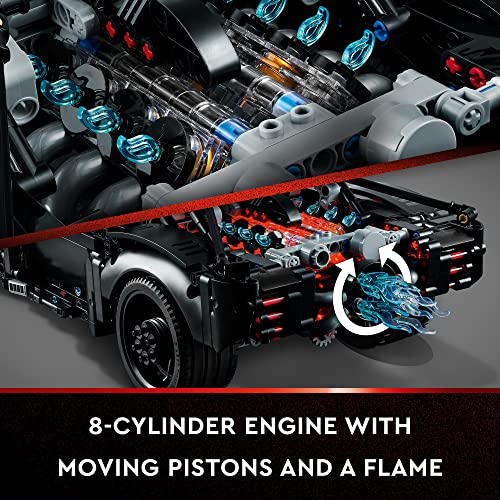 There is lots to explore on this epic car model, with 2 light bricks included, plus an 8-cylinder engine with moving pistons and a spinning flame