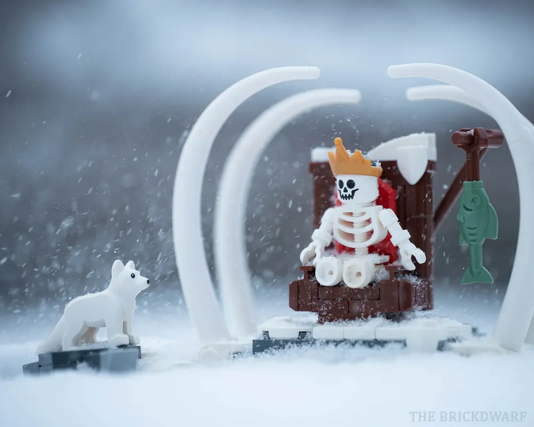 Thomas has a knack for using small builds in natural settings to make the tiny world of minifigures and LEGO animals feel epic. Fjallraven’s adventure continues with another spooky encounter, this time a face-to-face with the skeletal King of Greenland enthroned inside the remains of a whale. Wil we see more adventures of this little fox?