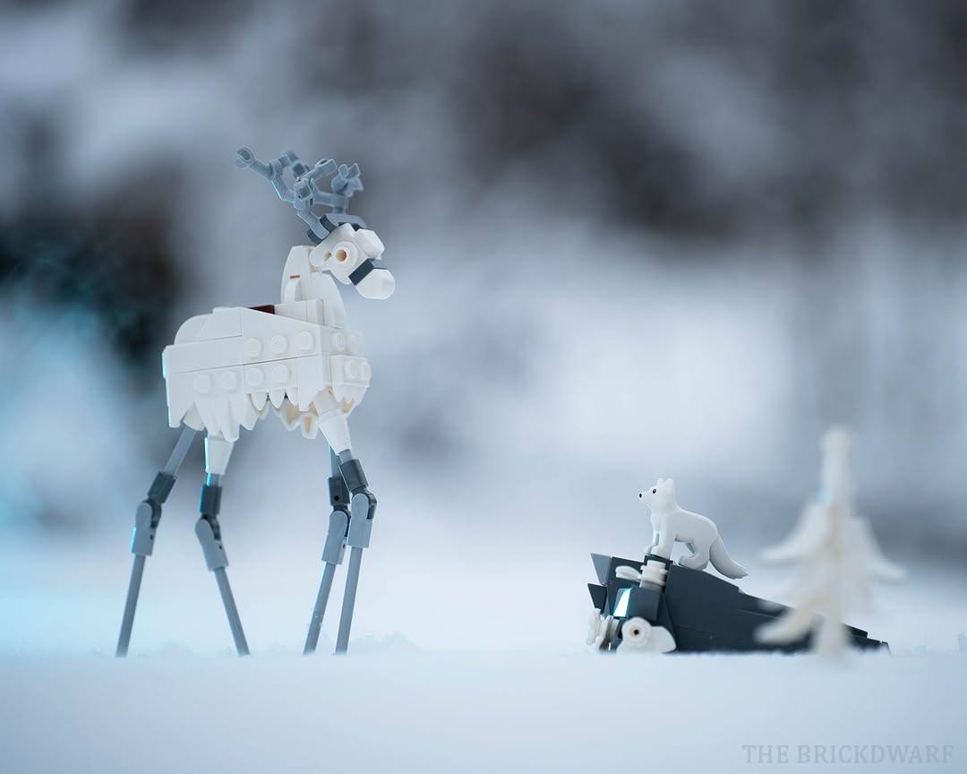 In Finland, where Thomas (thebrickdwarf) and his LEGO friends live, winter offers a chance to capture beautiful outdoor scenes in the snow. Here we see Fjallraven, the arctic fox, encountering the Ghost Reindeer of Greenland. It’s a haunting image, thanks to the creature design that takes inspiration from Salvador Dali for the reindeer’s spindly legs.